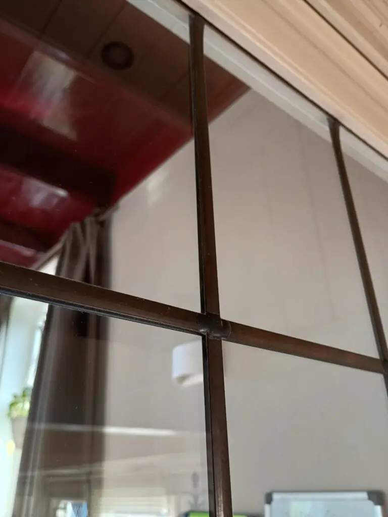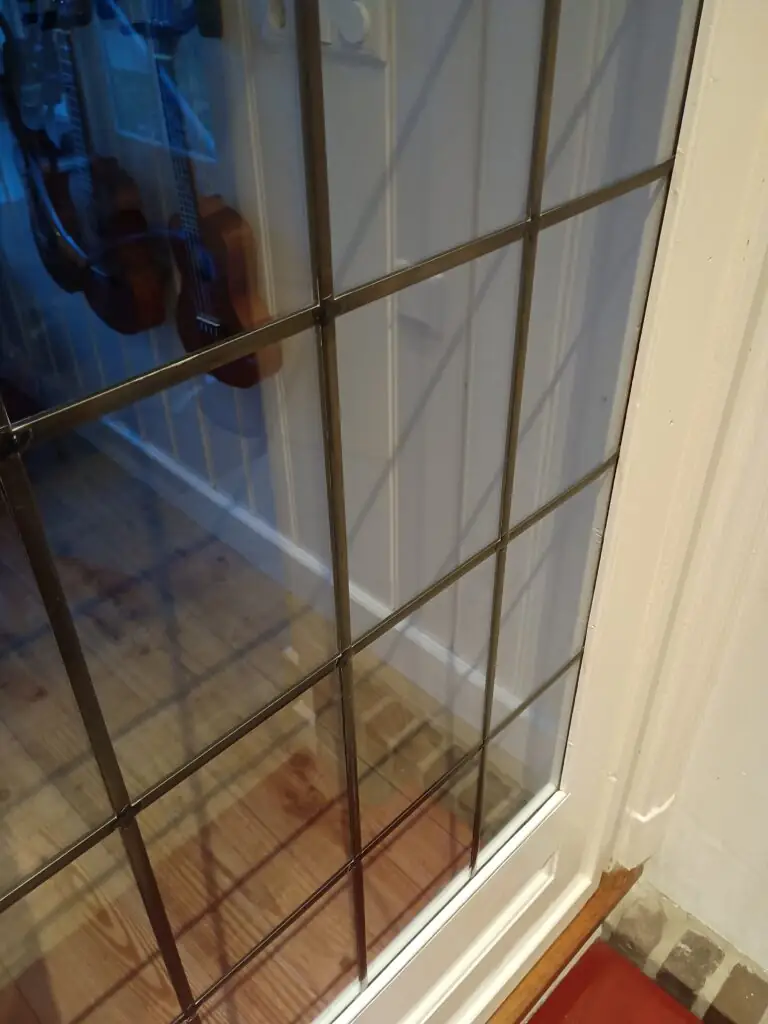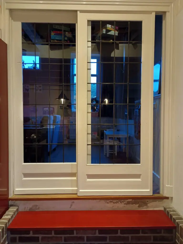 Glas in lood is prachtig, zeker in een jaren ’30 huis, maar het originele glas wil nog wel eens slap zijn, door verouderde lood verbindingen is de constructie eruit. Bij Kamer en suite deuren is dat kwetsbaar, kinderen kunnen zo door het glas heen duwen. Een oplossing is om nieuw glas-in-lood te plaatsen, dan heb je weer sterke verbindingen, maar er is iets beters: veiligheidsglas met aan beide kanten Lood strips. Niet van echt te onderscheiden, maar enorm sterk doordat het 1 glasplaat van veiligheidsglas is.